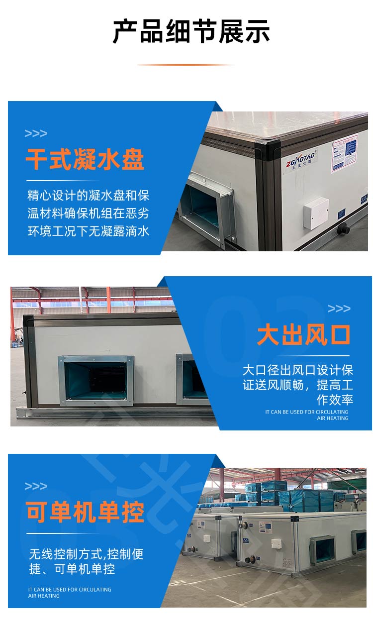 空調(diào)機(jī)組是由各種空氣處理功能段組裝而成的一種空氣處理設(shè)備。適用于阻力大于100Pa的空調(diào)系統(tǒng)。機(jī)組空氣處理功能段有:空氣混合、均流、過濾、冷卻、一次和二次加熱、去濕、加濕、送風(fēng)機(jī)、回風(fēng)機(jī)、噴水、消聲、熱回收等單元體。麗風(fēng)JK系列組合式潔凈空調(diào)機(jī)組風(fēng)量從3500m3/h至200000m3/h計(jì)30種規(guī)格共12種功能段供用戶自由選擇組合。主要適用于各種潔凈廠房的空氣凈化系統(tǒng)。如工業(yè)電子廠、精密機(jī)械制造廠、紡織車間、GMP制藥廠、化妝品、食品廠、純水車間、醫(yī)院手術(shù)部、ICU等多種場合。