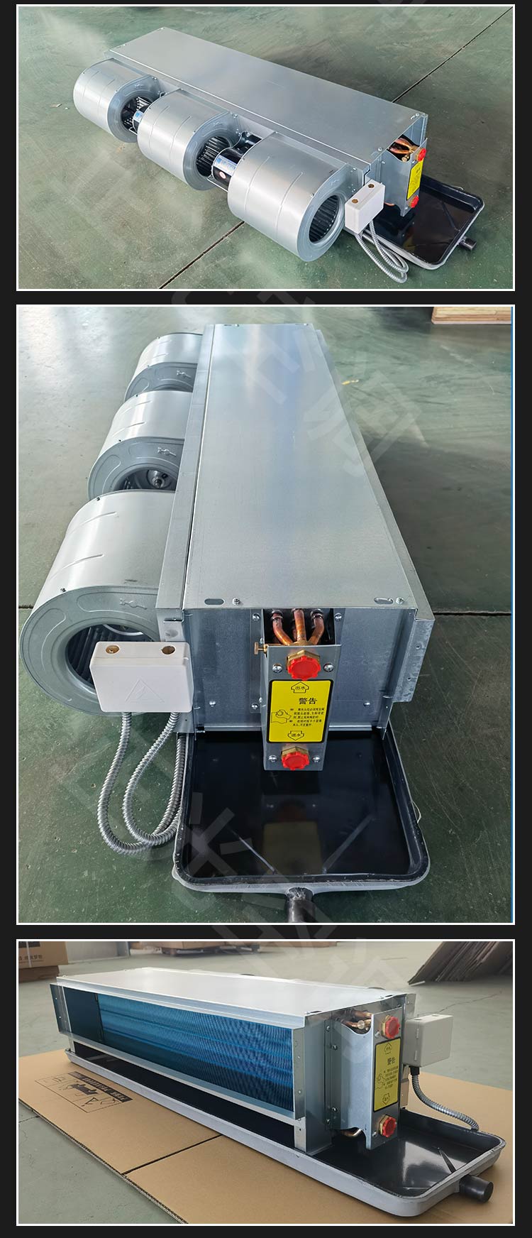 2.風(fēng)機(jī)盤管機(jī)組送風(fēng)量約為250~2500m/h,出口靜壓小于100Pa(出口靜壓大于30Pa為高靜壓型)。